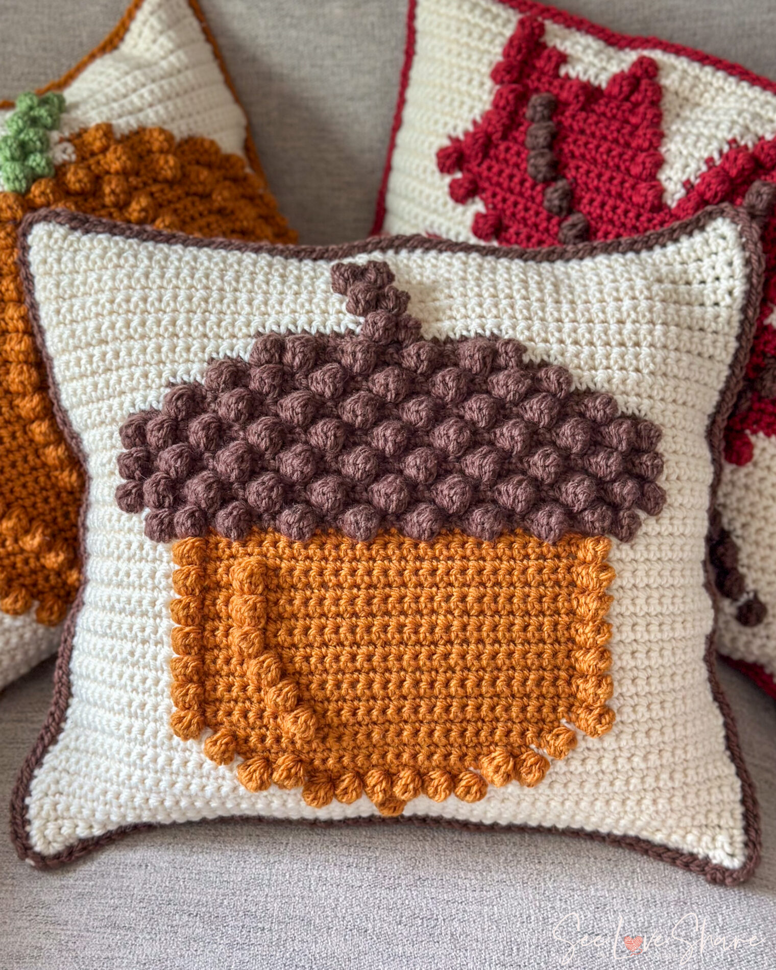 Crochet Bobble Stitch Acorn Pillow Pattern