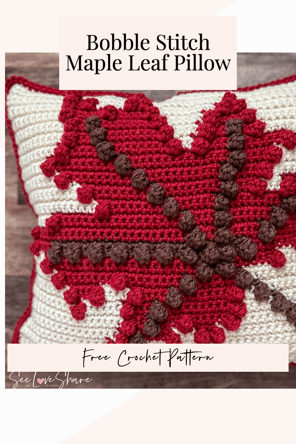 Crochet Bobble Stitch Maple Leaf Pillow Pattern (Free)