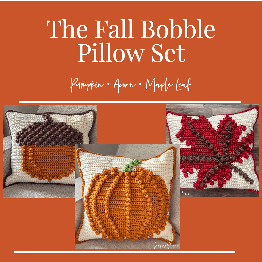 Crochet Bobble Stitch Fall Pillow Pattern Bundle
