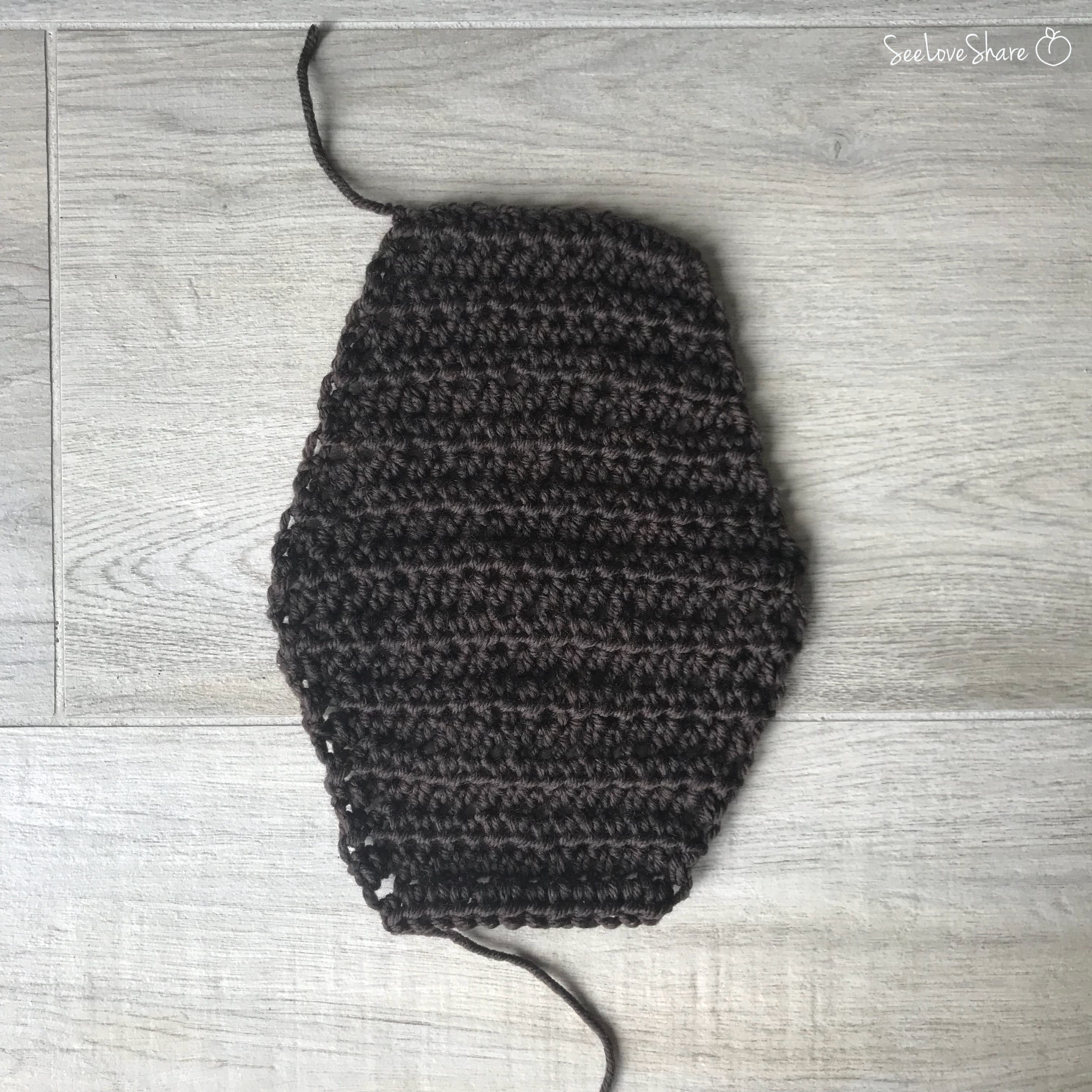 Repeat row 14-15 until there are 13 HDC, bind off.