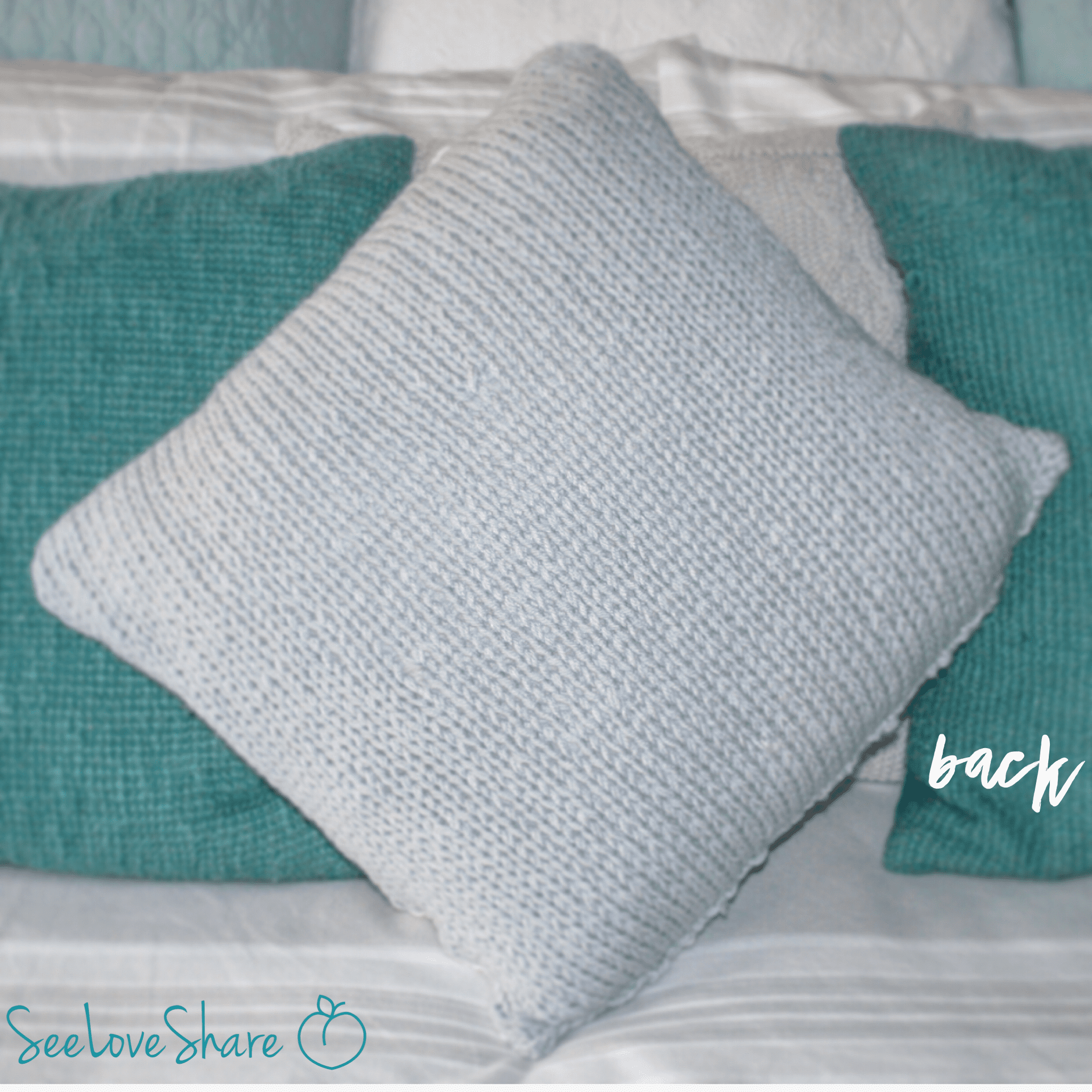 Lay Backs on a flat surface with RS facing and Seed st edges to form a 15 x 15 in. square. Sew Backs together at edges. With RS together, seam Back to Front around entire outside edge. Turn Pillow to RS through opening and insert pillow, sew remaining seam closed. Weave in ends.