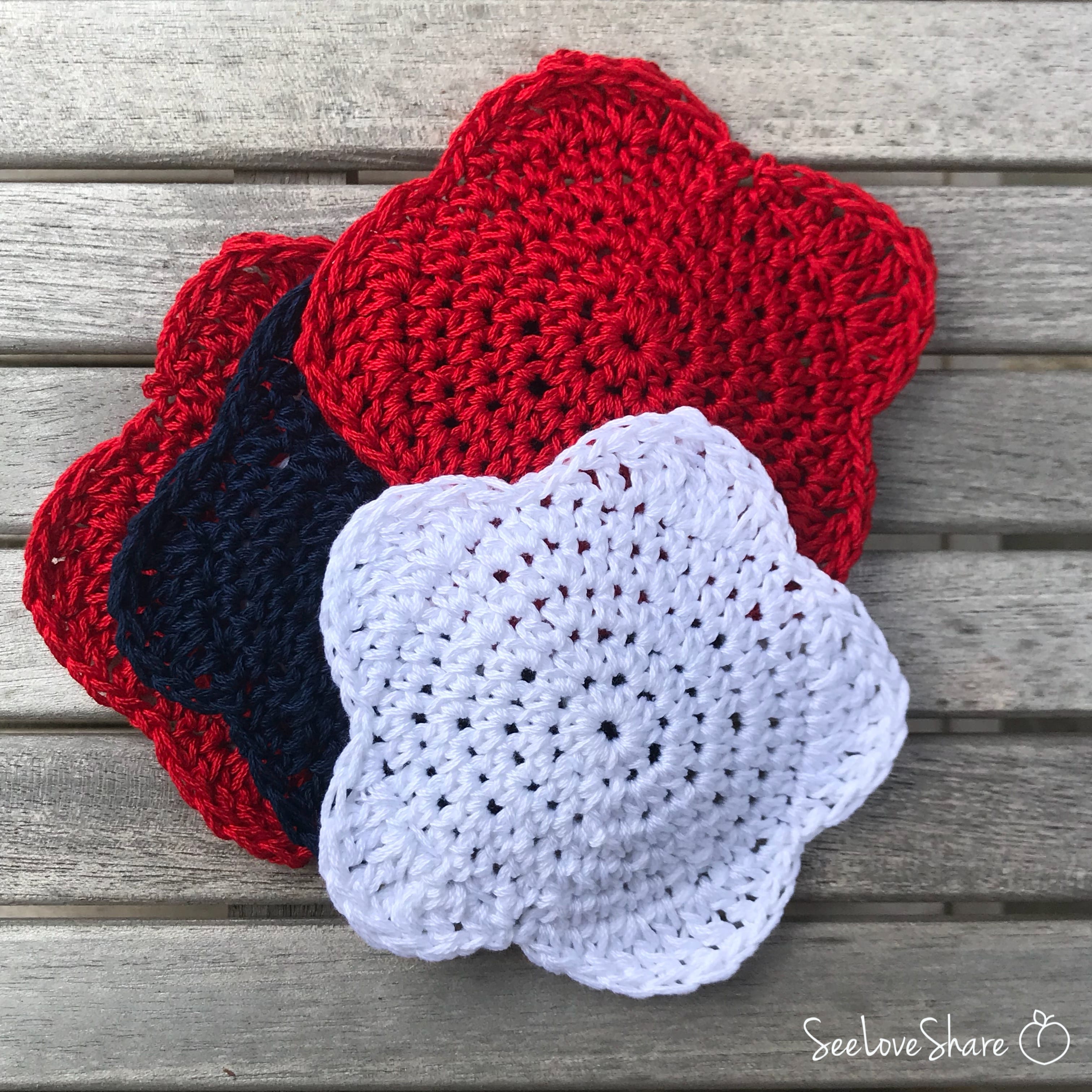 - Red, white and blue cotton yarn (I used these)