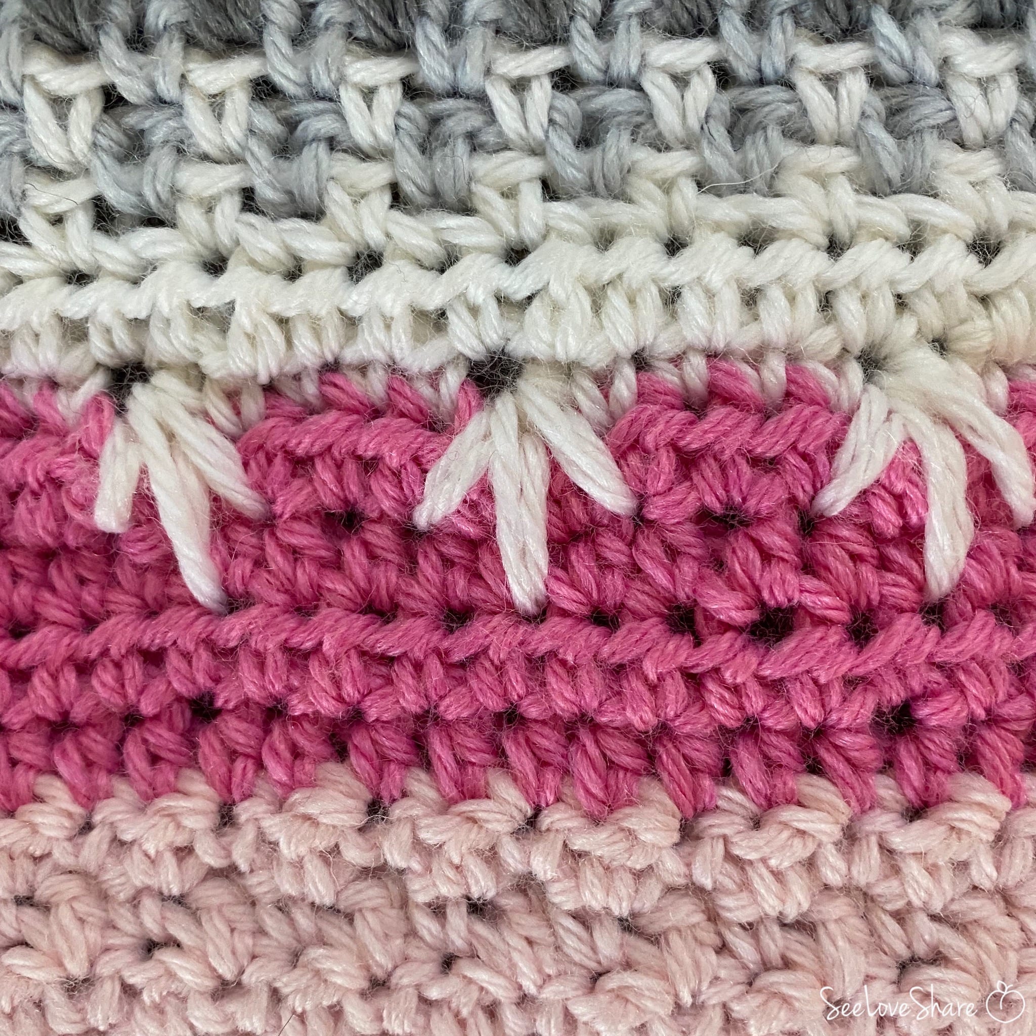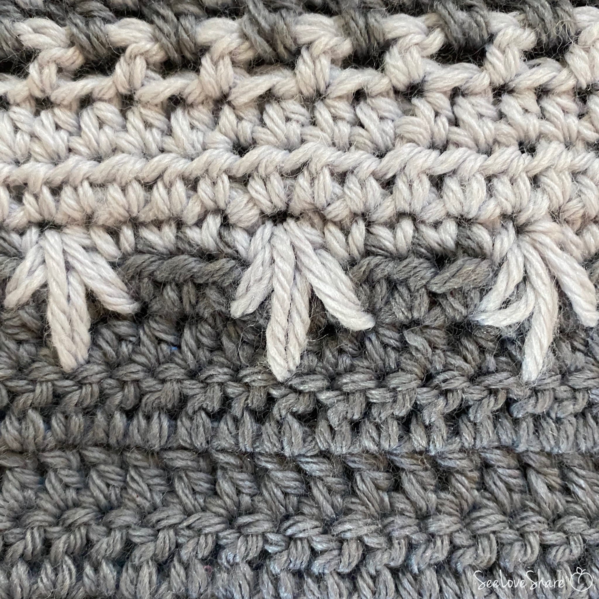 Stitch Notes: For this stitch to look its best it must sit on top of 3 rows of SC in a different colour.